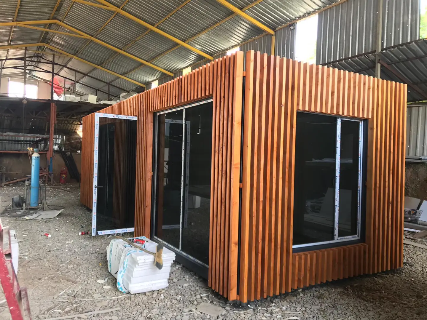 - DOĞAL AHŞAP KAPLAMA TAŞINABİLİR EV KONTEYNER 30 M2