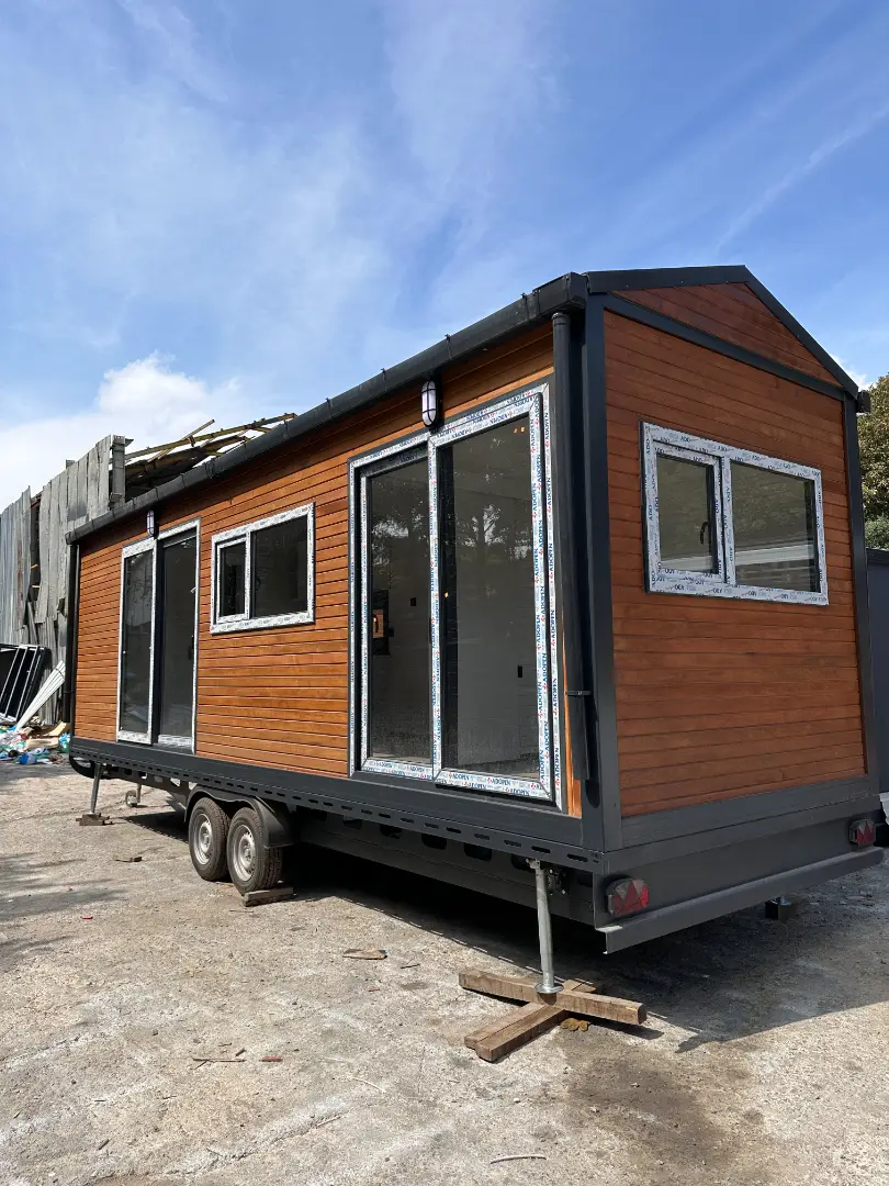 - DOĞAL AHŞAP KAPLAMA TAŞINABİLİR EV KONTEYNER 30 M2